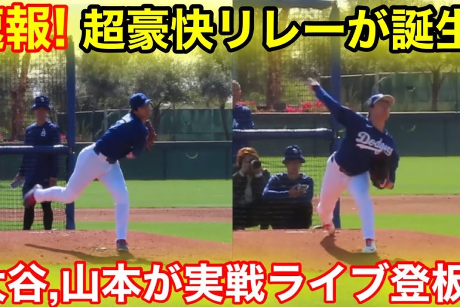 【速報】ついに投手大谷がライブBP登場!山本との超豪華登板でいきなりヤバ過ぎる変化球!現地映像