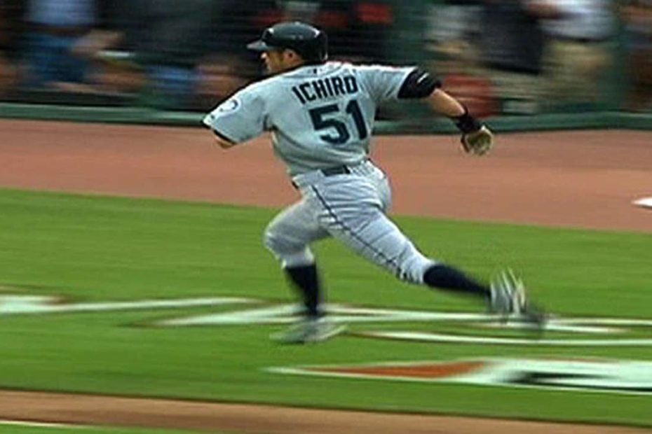 7/10/07: Ichiro Suzuki hits an inside-the-park home run during the top of the 5th inning after a weird bounce off the wall for the American League