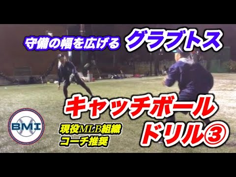 MLBミネソタ・ツインズ傘下にて日本人としては初となるコーチを務める三好貴士がキャッチボールの基礎練習におけるドリルの紹介をしています。普段のキャッチボールを終えた後に距離を近づけて試合を想定したグラブトスを行うことをおすすめします。普段からグラブだけでボールをフィードする習慣をつけることで試合でもスムーズに必要な場面(ダブルプレーなど)で使用することができます。選手の引き出しの数が多ければ多いほど、色んな状況に対応することが可能です。