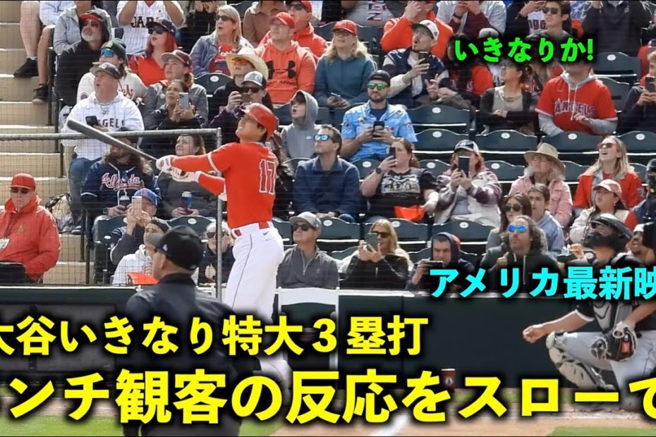 【アメリカ最新映像】大谷翔平 初打席でいきなり3塁打!ベンチとスタンドの反応をスロー再生してみた!春季キャンプ2023【現地映像】