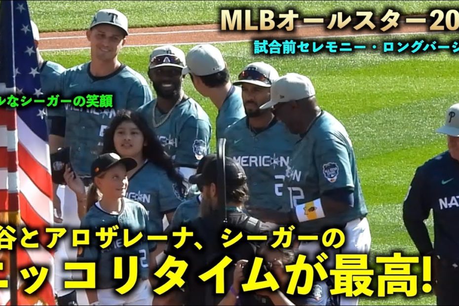 クールな男がニヤリ!大谷翔平がアロザレーナ、シーガーとニッコリ笑顔!試合前セレモニー・ロングバージョン!MLBオールスター2023【現地映像】シアトル・Tモバイルパーク