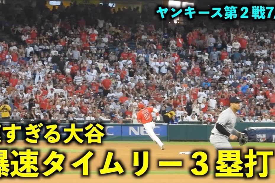 あっという間!速すぎる大谷翔平の爆速タイムリー三塁打!【現地映像】エンゼルスvsヤンキース第2戦7/19by admin大谷翔平2023-07-19 あっという間!速すぎる大谷翔平の爆速タイムリー三塁打!【現地映像】エンゼルスvsヤンキース第2戦7/19 大谷翔平選手の最新情報を知りたい方はチャンネル登録してね! https://bit.ly/3KTTJBB #大谷翔平 #3塁打 #爆速 #ヤンキース #7月19日 #速報 #ホームラン #shoheiOhtani #大谷さん #確信歩き #エンゼルス #海外の反応 #現地映像 #現地撮影 #二刀流 #特大ホームラン #オオタニサン 関連動画: 【大谷翔平選手】今年イチ興奮感動した試合 仲間への恩返し Shohei Ohtani Angels 鳥肌級の大歓声が!球宴の主役大谷登場でスタジアム大喝采!【最新映像】 【海外の反応】大谷翔平、衝撃の4四球(1申告敬遠)に世界中が驚愕「ヤンキースの陰謀」 試合前の笑顔も最高!ゲーム終盤にムスタカスに肩揉みする大谷翔平!【現地映像】エンゼルスvsタイガース第1戦7/26 コメントを残す コメントをキャンセルメールアドレスが公開されることはありません。 ※ が付いている欄は必須項目です名前 ※ メール ※ サイト コメント ※ 次回のコメントで使用するためブラウザーに自分の名前、メールアドレス、サイトを保存する。 上に表示された文字を入力してください。 前【大谷気迫の35号同点弾!!】7.18ヤンキースVSエンゼルス 日本語ハイライト #MLB次【大谷7試合連続安打!!】7.19ヤンキースVSエンゼルス 日本語ハイライト #MLB