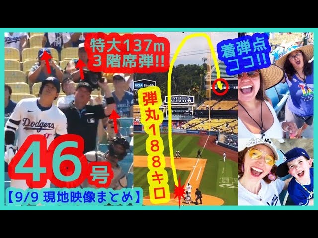 ⚾️大谷翔平 3階席137m特大46号ホームランで本拠地が揺れるw弾丸188キロでTVカメラも打球見失うww【現地映像まとめ】(2024.9.9 Dodgers 4-0 Guardians)by admin大谷翔平2024-09-10 ⚾️大谷翔平 3階席137m特大46号ホームランで本拠地が揺れるw弾丸188キロでTVカメラも打球見失うww【現地映像まとめ】(2024.9.9 Dodgers 4-0 Guardians) ほぼ場外弾💣️💣️💣️ #大谷翔平 #ホームラン #ドジャース 関連動画: 【NPBじゃ考えられない?】大谷翔平 BB君の絡みをまとめてみた!2021年シーズン後半 現地映像 【#藤浪晋太郎 ダイジェスト】#MLB #ヤンキース vs #アスレチックス 6.29 触れることなくアウト!スマートすぎる大谷翔平 #Shorts #baseball #野球 #珍プレー #mlb 大谷翔平 お気に入りの選手はホセ・ラミレス 面白くてナイスガイ オールスターゲームでのインタビュー 日本語翻訳字幕付 コメントを残す コメントをキャンセルメールアドレスが公開されることはありません。 ※ が付いている欄は必須項目です名前 ※ メール ※ サイト コメント ※ 次回のコメントで使用するためブラウザーに自分の名前、メールアドレス、サイトを保存する。 上に表示された文字を入力してください。 前Steal No. 47 ✅ for Shohei Ohtani | 大谷翔平ハイライ次【今永昇太 vs 大谷翔平 今日2度目の対決は今永に軍配!】無死1,2塁の場面 ファーストゴロで併殺!今永がピンチを切り抜ける