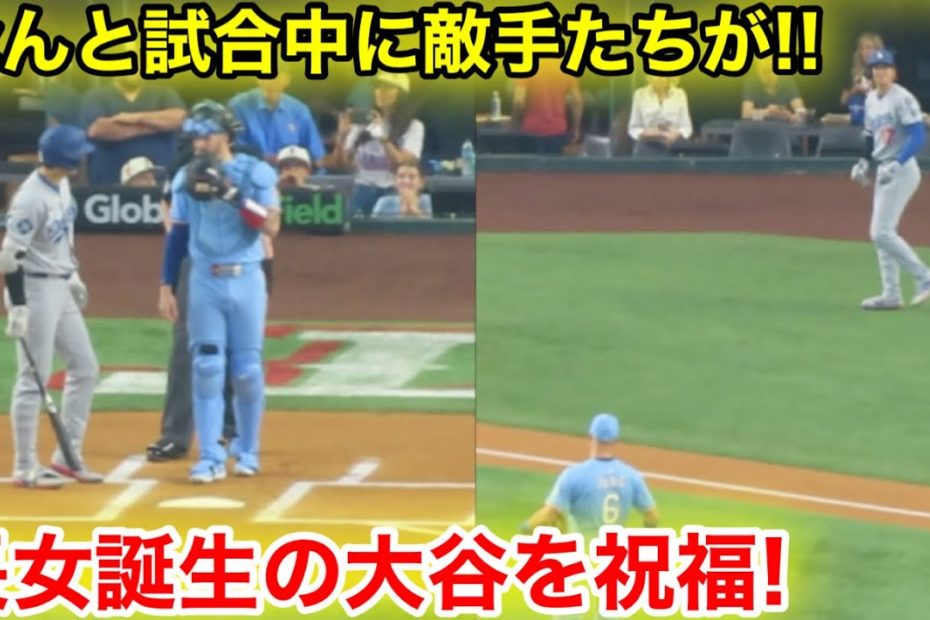 なんと試合中に敵手たちが!!! 長女誕生の大谷を祝福!現地映像