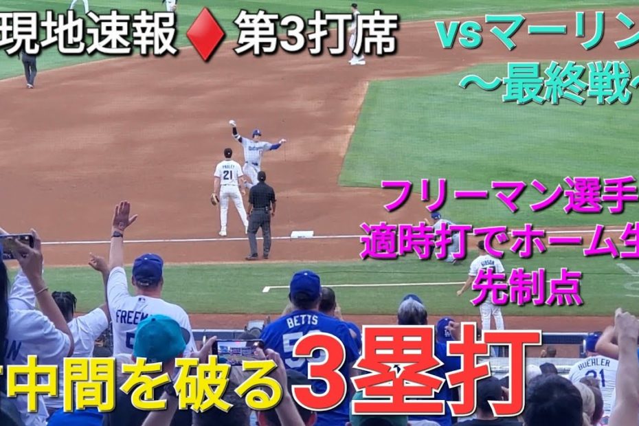♦️現地速報♦️第3打席【大谷翔平選手】1アウトランナー無しでの打席 ー 右中間を破る3塁打で好機を創出⚾️フリーマン選手のタイムリーで先制点のホームインvs マーリンズ・マーリンズ〜シリーズ最終戦〜by admin大谷翔平2025-05-08 ♦️現地速報♦️第3打席【大谷翔平選手】1アウトランナー無しでの打席 ー 右中間を破る3塁打で好機を創出⚾️フリーマン選手のタイムリーで先制点のホームインvs マーリンズ・マーリンズ〜シリーズ最終戦〜 関連動画: 大谷翔平大爆笑‼️初ホームラン直前の様子が面白過ぎた🤣理解不能【現地映像】ShoheiOhtani Angels 【MLB情報】元広島「鈴木誠也」の絶好調の要因と大谷翔平について語ります! 【大谷翔平・山本由伸・ダルビッシュ有】WBC優勝トリオが談笑 一方、松井裕樹は間に合わず… 【日本語字幕】大谷翔平マジックに大興奮❗️#shors #大谷翔平現地映像 #大谷翔平速報 #ohtanishohei #ドジャース コメントを残す コメントをキャンセルメールアドレスが公開されることはありません。 ※ が付いている欄は必須項目です名前 ※ メール ※ サイト コメント ※ 次回のコメントで使用するためブラウザーに自分の名前、メールアドレス、サイトを保存する。 上に表示された文字を入力してください。 前【現地実況】ドジャース・大谷翔平が2試合連続の第10号特大ソロHR!「彼はマーリンズにとって脅威であり続けている」次速報!先制ホームイン!爆烈3塁打ん!大谷翔平 第3打席【5.7現地映像】ドジャース0-0マーリンズ1番DH大谷翔平 6回表無1死ランナーなし