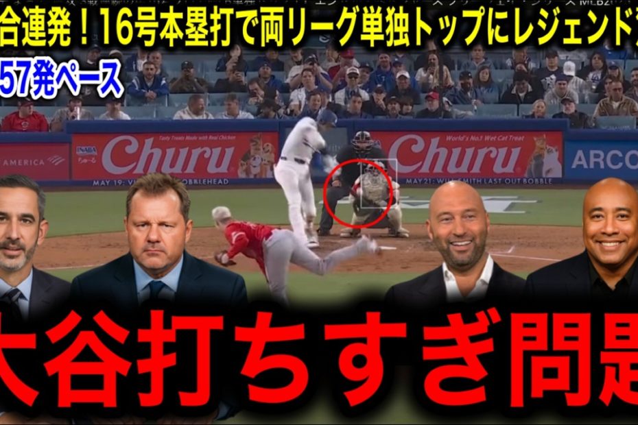 【大谷翔平】3戦連発!ついに57発ペース!16号ソロ!打球速度185キロの特大弾で両リーグ単独トップにレジェンド驚愕!