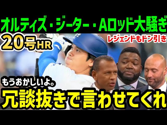 大谷翔平20号、3試合連続ホームランで本塁打王独走の大暴れにオルティズ・ジーター・Aロッドらレジェンドがドン引き「今日、確信したよ。ショウヘイは…」【海外の反応/ドジャース/MLB】