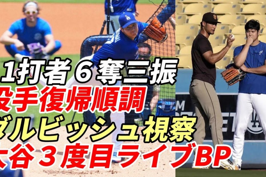 【大谷翔平】ダルビッシュ有が視察、44球、打者11人に無安打6奪三振!大谷翔平が3度目のライブBP・実戦登板!投手復帰へ着実に前進!上々の内容!