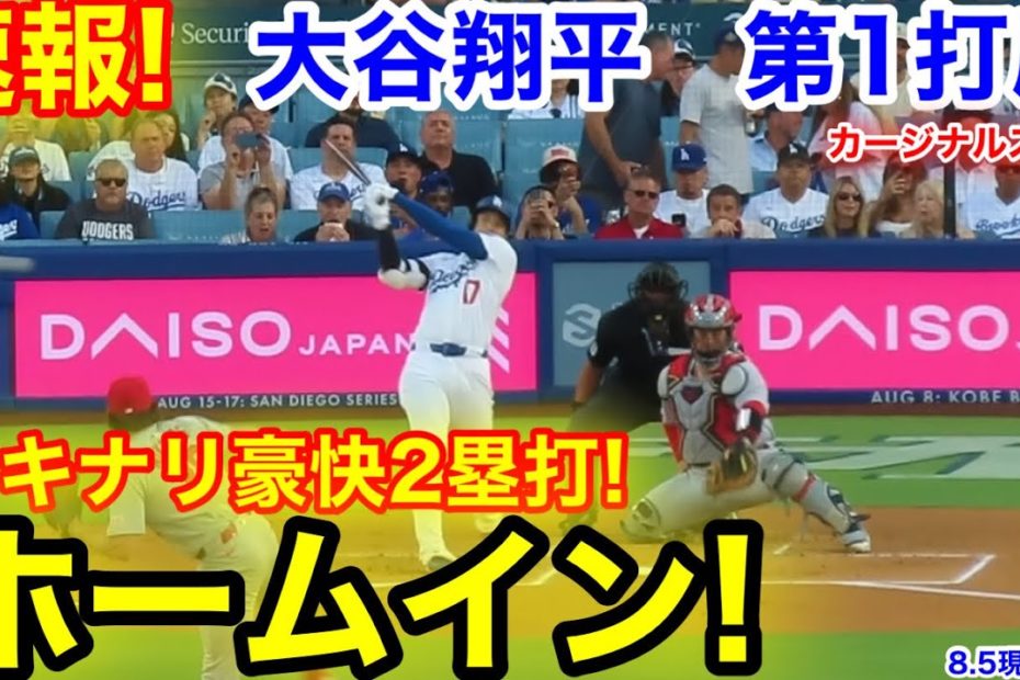 速報!豪快2塁打ホームイン!大谷翔平 第1打席【8.5現地映像】カージナルス0-0ドジャース1番DH大谷翔平 1回裏無死ランナーなしby admin大谷翔平2025-08-06 速報!豪快2塁打ホームイン!大谷翔平 第1打席【8.5現地映像】カージナルス0-0ドジャース1番DH大谷翔平 1回裏無死ランナーなし 速報!大谷翔平 第1打席【8.5現地映像】 カージナルス0-0ドジャース 1番DH大谷翔平 1回裏無死ランナーなし #大谷翔平 #大谷 #野球 #ホームラン #現地映像 #山本由伸 #海外の反応 関連動画: 9回裏! エンゼルス悲劇の同点打! しかし大谷の行動に一同仰天!7.25タイガース戦【現地映像】 大谷翔平と対戦したブレーブス監督が漏らした本音がヤバい…「大谷だけがエンゼルスで明らかに異常だ」月間MVP連続受賞に米国から称賛の声【海外の反応/MLB/野球】 【大谷が2安打1盗塁!初回から両軍合わせて7点が入る乱打戦はドジャースが逆転勝利!】ドジャースvsナショナルズ 試合ハイライト MLB2025シーズン 4.10 Shohei Ohtani homers and collects 3 hits! (How close was he to hitting more homers? 🤏) | 大谷翔平ハイライト コメントを残す コメントをキャンセルメールアドレスが公開されることはありません。 ※ が付いている欄は必須項目です名前 ※ メール ※ サイト コメント ※ 次回のコメントで使用するためブラウザーに自分の名前、メールアドレス、サイトを保存する。 上に表示された文字を入力してください。 前【大谷翔平 好相性のマイコラスから先頭打者二塁打!】カージナルスvsドジャース MLB2025シーズン8.6次大谷まさかの行動にスタジアム感動!現地映像