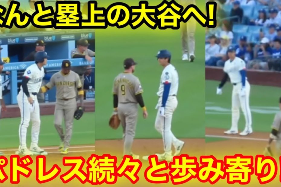 なんと塁上で!パドレス内野陣が続々と大谷へ歩み寄り!現地映像