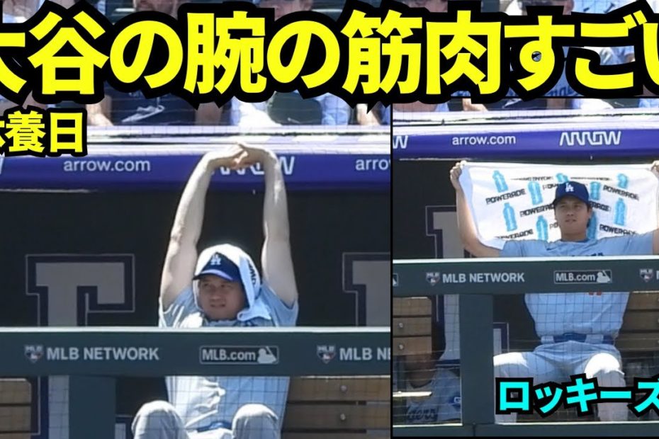 休養日なのでインナーを着ていない大谷翔平の腕の筋肉がやばすぎる💪💪35度の炎天下で応援お疲れ様でした!!【現地映像】2025年8月21日 ロッキーズ戦