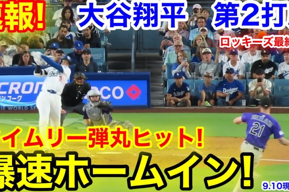 速報!タイムリー弾丸爆速ホームイン!大谷翔平 第2打席【9.10現地映像】ロッキーズ0-2ドジャース1番DH大谷翔平 2回裏2死ランナー3塁by admin大谷翔平2025-09-11 速報!タイムリー弾丸爆速ホームイン!大谷翔平 第2打席【9.10現地映像】ロッキーズ0-2ドジャース1番DH大谷翔平 2回裏2死ランナー3塁 速報!大谷翔平 第2打席【9.10現地映像】 ロッキーズ0-2ドジャース 1番DH大谷翔平 2回裏2死ランナー3塁 #大谷翔平 #大谷 #野球 #ホームラン #現地映像 #山本由伸 #海外の反応 関連動画: 韓国で大谷翔平がどれだけ有名か聞いてみたら衝撃の結果になった!! 【大谷翔平 右中間へ2試合ぶり11号ソロ!】5.21 ツインズ VS エンゼルス 日本語ハイライト 大谷のギャグセンを絶賛するテオスカーww「翔平がヤバイ事を言ってきたんだ…」【日本語字幕】 ノーワインドアップでピッチング練習【大谷翔平選手】~自主トレDay4~Shohei Ohtani 2025 Spring Training コメントを残す コメントをキャンセルメールアドレスが公開されることはありません。 ※ が付いている欄は必須項目です名前 ※ メール ※ サイト コメント ※ 次回のコメントで使用するためブラウザーに自分の名前、メールアドレス、サイトを保存する。 上に表示された文字を入力してください。 前【1安打1打点3出塁!大谷翔平 全打席ダイジェスト】ロッキーズvsドジャース MLB2025シーズン 9.11次大谷翔平タイムリーヒットからのベッツのタイムリーで一塁から爆走ホームイン!!ボブルヘッドデーは特に活躍する大谷翔平第2打席!【現地映像】2025年9月10日ロッキーズ戦