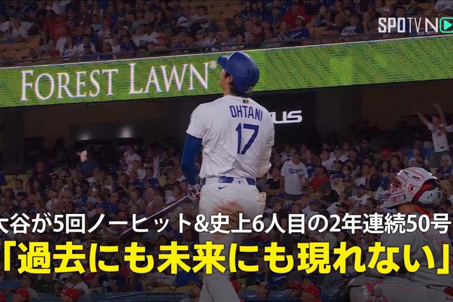 【現地実況】ドジャース・大谷翔平が5回ノーヒットピッチング&MLB史上6人目となる2年連続50号HRの偉業を達成!「彼のような選手は過去にも未来にも現れない」