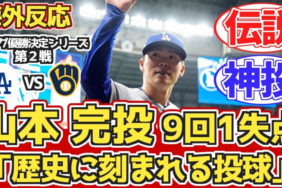 【海外の反応】山本完投9回1失点,大谷タイムリーで2連勝!10.15 vs ブリュワーズ。ドジャースファン試合中の反応 【山本由伸】【大谷翔平】【リーグチャンピオンシップシリーズ第2戦】