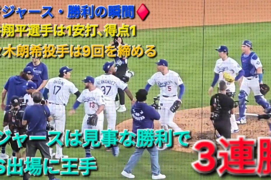 ♦️ドジャース・勝利の瞬間♦️大谷翔平選手は1安打⚾️佐々木朗希投手が9回を締める⚾️ドジャースは3連勝でWSに王手⚾️2025年10月16日by admin大谷翔平2025-10-17 ♦️ドジャース・勝利の瞬間♦️大谷翔平選手は1安打⚾️佐々木朗希投手が9回を締める⚾️ドジャースは3連勝でWSに王手⚾️2025年10月16日 関連動画: 大谷翔平 第1打席で今年初めて走る瞬間!【現地映像】 一平賭博の全てついに判明【なんJ反応】 【山本が5回無失点&ベッツは4試合連続HR】カージナルス vs ドジャース 試合ハイライト MLB2024シーズン 3.31 【山本がメジャー初勝利&大谷は3戦連続のマルチ安打!】ドジャース vs カブス 試合ハイライト MLB2024シーズン 4.7 コメントを残す コメントをキャンセルメールアドレスが公開されることはありません。 ※ が付いている欄は必須項目です名前 ※ メール ※ サイト コメント ※ 次回のコメントで使用するためブラウザーに自分の名前、メールアドレス、サイトを保存する。 上に表示された文字を入力してください。 前Shohei Ohtani’s leadoff triple and Mookie Betts’ double has the Dodgers cooking early 😤 | 大谷翔平 ハイライト次♦️オープニングセレモニー♦️久しぶりにソーシア氏と再会【大谷翔平選手】対ミルウォーキー・ブリューワーズ~NLCSシリーズ3戦目~Shohei Ohtani vs Brewers 2025