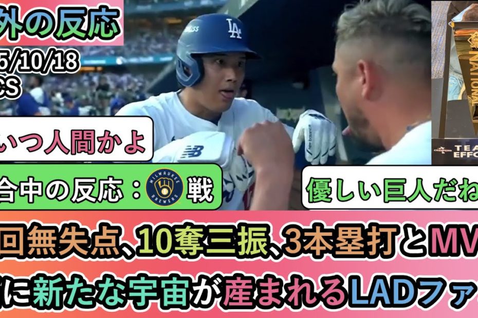 【試合中の海外の反応】 大谷翔平が6回無失点、10奪三振、3本塁打とMVP!脳に新たな宇宙が産まれるLADファン