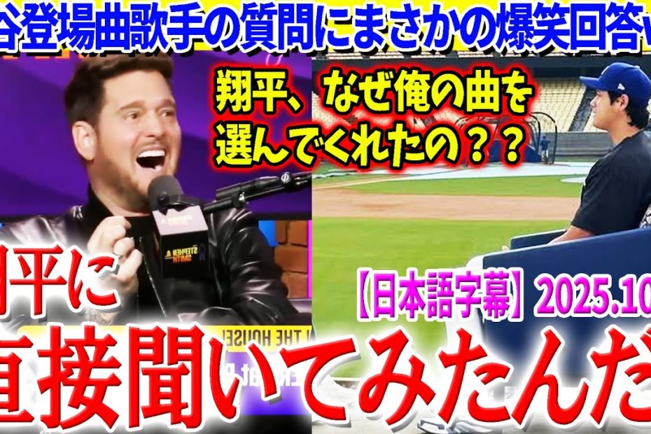 「翔平、なぜ俺の曲を選んだの?」マイケル・ブーブレの質問に大谷が爆笑回答ww【日本語字幕】by admin大谷翔平2025-10-23 「翔平、なぜ俺の曲を選んだの?」マイケル・ブーブレの質問に大谷が爆笑回答ww【日本語字幕】 当チャンネルでは、MLBでプレーしている日本人選手の情報を専門に扱っています。 主にMLBで活躍中の日本人選手に対する「海外の反応」を紹介しています。 #大谷翔平 #海外の反応 #MLB 関連動画: [ 大谷翔平 ]「デグロム+トラウト=オオタニ」2年連続となる投打2部門でオールMLB選出【海外の反応】ペーニャ氏も絶賛! 【MLB】独自解説!大谷翔平選手の大偉業達成の裏側! 【ドジャース・大谷翔平 あと少しでHRという強烈な当たり!】エドマンが好走塁!フェンス直撃の2打席連続ヒット! ♦️速報♦️第4打席【大谷翔平選手】ノーアウトランナー1塁、2塁での打席 ー センター前タイムリーヒットで貴重な追加点 vs メッツ〜NLCS第6戦〜 コメントを残す コメントをキャンセルメールアドレスが公開されることはありません。 ※ が付いている欄は必須項目です名前 ※ メール ※ サイト コメント ※ 次回のコメントで使用するためブラウザーに自分の名前、メールアドレス、サイトを保存する。 上に表示された文字を入力してください。 前【大谷翔平 ポストシーズン全5本塁打まとめ】第1弾 MLB2025ワールドシリーズ直前特集次大谷翔平2本目特大弾のバックネット裏映像がエグすぎるww【プロ野球ネット反応】