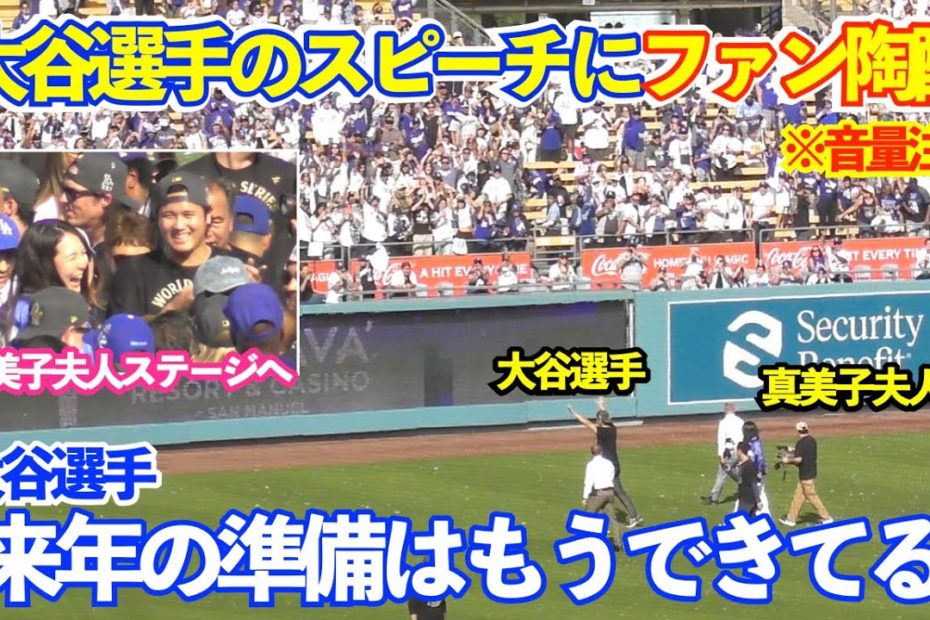 [字幕付き]ファン陶酔…大谷翔平のスピーチに現地ファン大発狂!真美子夫人はベッツと会話で大爆笑!大谷選手をずっと撮影し続けてる姿がなんか微笑ましい!ドジャースWS優勝パレード&セレモニー