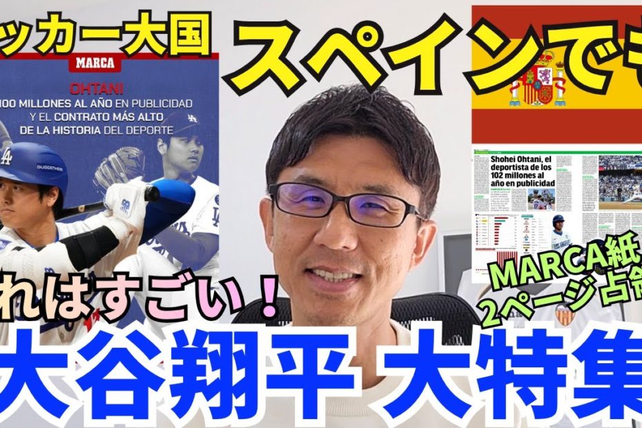 スペインでも大谷翔平 大特集。野球がほぼ存在しないサッカー大国で異例の扱い。まさに桁違い!広告収入だけで年150億円以上を稼ぐスーパーアスリートの経済インパクト。by admin大谷翔平2025-11-08 スペインでも大谷翔平 大特集。野球がほぼ存在しないサッカー大国で異例の扱い。まさに桁違い!広告収入だけで年150億円以上を稼ぐスーパーアスリートの経済インパクト。 2:57 11月7日のMARCA紙面紹介 Una Entrada(チケット一枚):メンバーシップ https://www.youtube.com/channel/UC5SC8M_t0dS7jT732ixN8mw/join 【楽曲提供:株式会社光サプライズ】 #大谷翔平 #ShoheiOtani #山本由伸 #ドジャース 関連動画: エンゼルスが大谷翔平との契約延長のベストタイミングはいつか⁉️ コレアを狙っているのか⁉️ デトマーズのブルペン入り アプトンDFAの可能性は⁉️ 大谷翔平の移籍先は?MLB公式起用の予知能力者は「エンゼルス」ファン予想1位は「ドジャース」【Nスタ解説】|TBS NEWS DIG 【緊急速報】 山本由伸がドジャースへ! 大谷翔平が司会進行! 日本人選手が作った強力チーム! 速報!9回表ラスト弾丸打!大谷翔平 第5打席【7.30現地映像】ドジャース2-5レッズ2番P/DH大谷翔平 9回表2死ランナー2塁 コメントを残す コメントをキャンセルメールアドレスが公開されることはありません。 ※ が付いている欄は必須項目です名前 ※ メール ※ サイト コメント ※ 次回のコメントで使用するためブラウザーに自分の名前、メールアドレス、サイトを保存する。 上に表示された文字を入力してください。 前【熱搜新聞】超越傳奇鈴木一朗 大谷翔平四度獲銀棒獎|民視新聞|次ロハス、大谷翔平に対するドレイク煽りの舞台裏を暴露する…wwwwwww