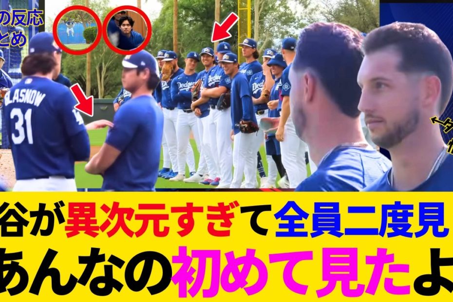 大谷翔平が異次元すぎて全員二度見w全体練習がもはやイベント化!同僚もファンも大谷に集まっちゃうwタッカーとのギャップが面白すぎwイタズラ小僧発見される【最新/キャンプ/ドジャース/MLB/海外の反応】
